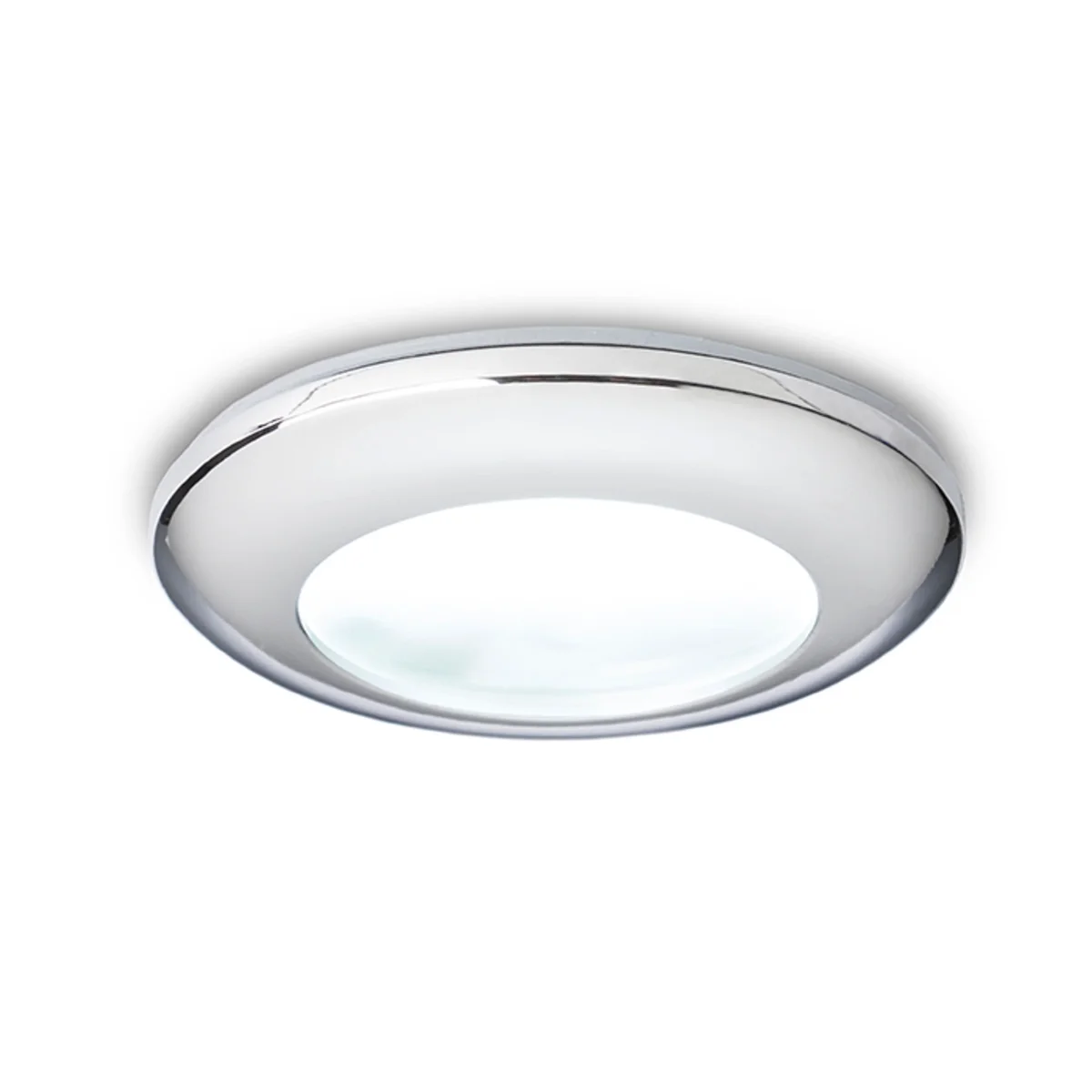 Luminaria empotrada con protección contra la humedad adecuada para el baño. Vidrio satinado. Necesita agregar un transformador adecuado.