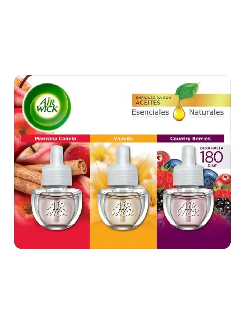 🍏🍓🍦 Air Wick® Eléctrico – Pack Fragancias Especiales: Manzana Canela, Vainilla y Country Berries 🌿