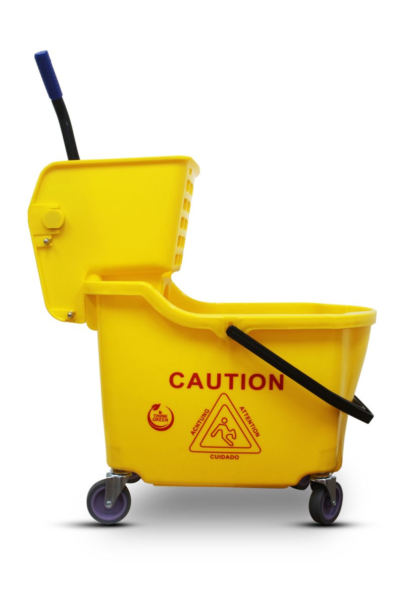 BALDE ESCURRIDOR NO EXPRIMIDOR DE 32 LITROS SOPORTA SOLO UN TRAPEADOR CON UNA MECHA DE 600 GRAMOS MÁXIMO.