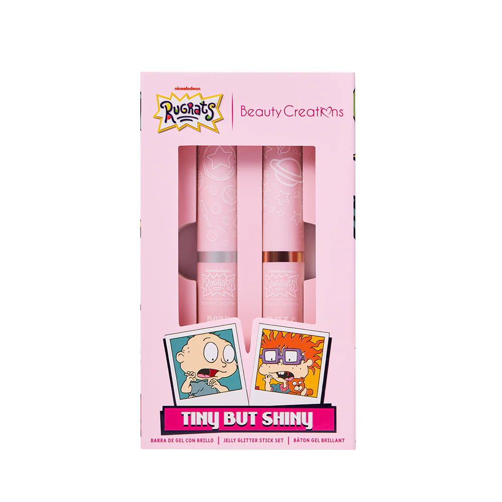 Llena tu look de brillo con Tiny But Shiny Glitter Gel Sticks de la colección Rugrats x Beauty Creations. Inspirado en el dúo inseparable Tommy y Chuckie, este set de barras de glitter en gel ofrece destellos intensos y multidimensionales con una fórmula a base de agua que se desliza suavemente y deja una sensación fresca al aplicarse.