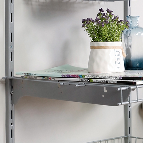 Con los Brazos Mix de 25 cm de Rejiplas, podrás instalar los entrepaños y accesorios de la línea Platinum y Ganaespacio® y así desarrollar proyectos de organización como: Clóset, vestier, cuarto útil, oficina, alacena, etc, que con gran facilidad permiten graduar la altura de los entrepaños de acuerdo a tus necesidades. Tus espacios ahora serán más agradables y organizados.