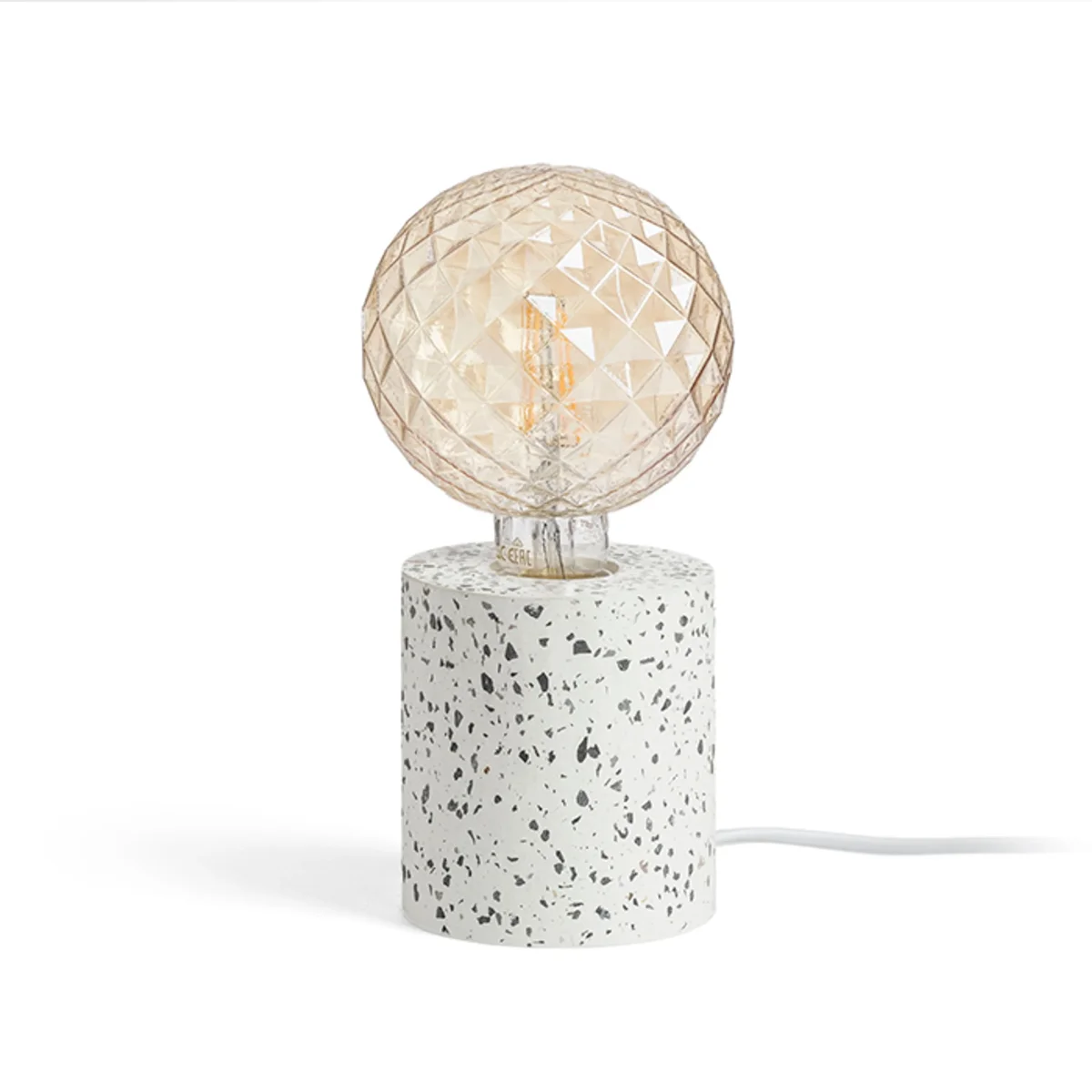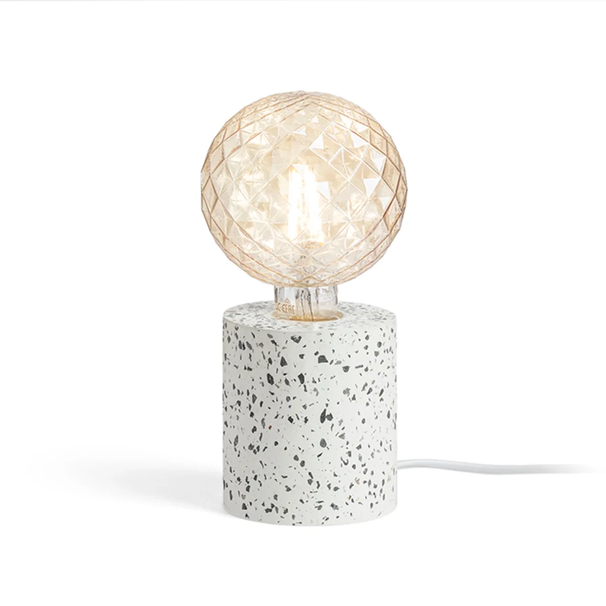 Lámpara de mesa minimalista de forma cilíndrica, para bombillas decorativas. Cada base tiene un patrón único.