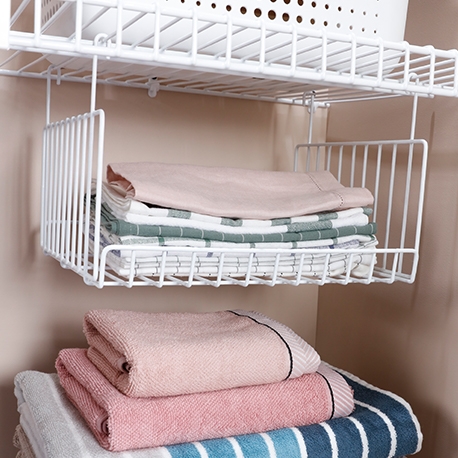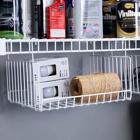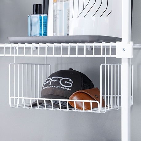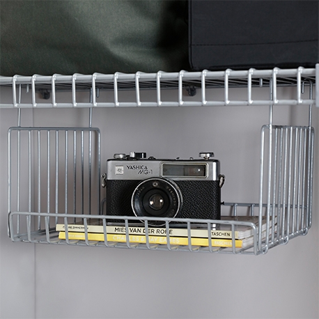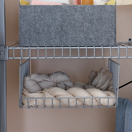 La Canasta colgante pequeña es el complemento perfecto para el clóset, cuarto útil, zona de ropas, en fin se adapta fácilmente a los entrepaños en rejilla. Te ayuda a optimizar espacio, y además inmune a plagas, ventilada y resistente a la humedad.