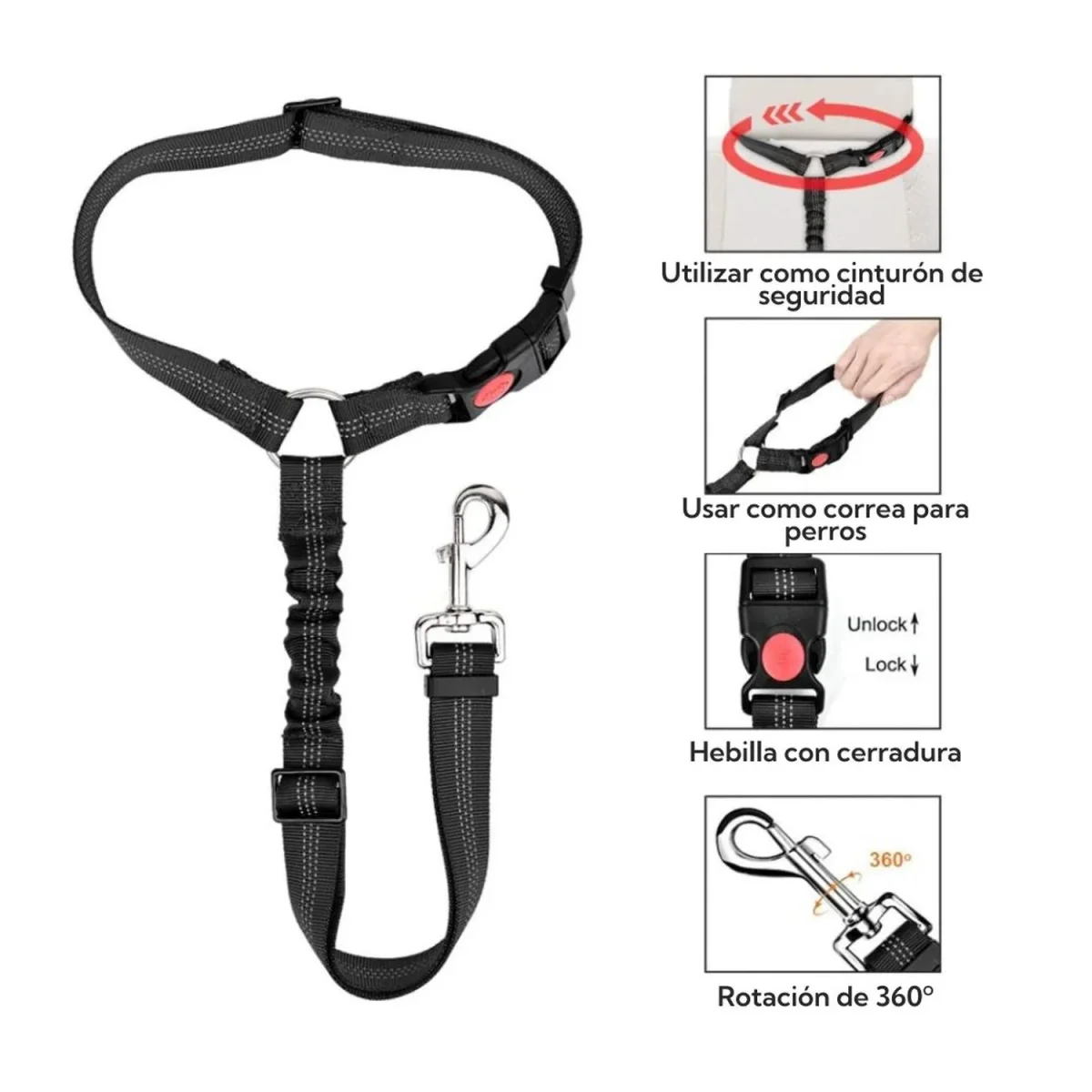 Correa Leash Para Mascotas Pro Outdoor El cinturón de seguridad para mascotas Pro Outdoor, ha introducido el diseño único para reposacabezas, que se puede utilizar en todos los modelos de vehículos que tienen reposacabezas, no más preocupaciones por que la hebilla no sea compatible con coches. Mantén a las mascotas seguras: cuenta con tela de nailon superior, bucles y anillos de ajuste de acero, la correa del cinturón de seguridad es lo suficientemente duradera y construida para durar, protegiendo la seguridad de todas las mascotas y evitando que el conductor distraiga al conducir. La hebilla de liberación rápida con cerradura en el círculo del reposacabezas doble, garantiza una conducción segura de la mascota.Diseño de amortiguador elástico: cinturón de seguridad Pro Outdoor equipado con elástico para hacer que la correa absorba los golpes, fortaleciendo eficazmente la protección de sus mascotas de frenos repentinos o giros bruscos. Longitud ajustable: la correa de sujeción se puede ajustar rápida y fácilmente entre 50 a 65 cm para adaptarse a perros pequeños, medianos o grandes. El círculo del reposacabezas también es ajustable para ser compatible con varios coches. El clip giratorio de 360 grados ayuda a evitar enredos, lo que permite que el perro se siente, se pare, se acueste o llegue a la ventana para ver cómodamente.