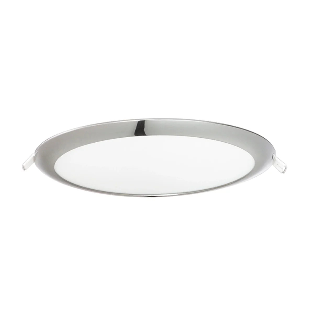 Luminaria LED empotrable circular para techos de cartón yeso con marco redondeado y profundidad de hueco reducida.