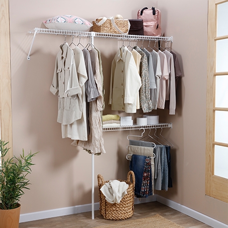 El Eco Clóset de Rejiplas es un kit en rejilla metálica diseñado para crear soluciones de almacenamiento prácticas y versátiles en cualquier espacio de tu hogar o negocio. Este sistema ajustable se adapta a espacios entre 1 m y 1.6 m de ancho, lo que lo hace ideal para clósets pequeños, cuartos útiles, zonas de ropas, estudios o cualquier rincón que necesite orden y funcionalidad.