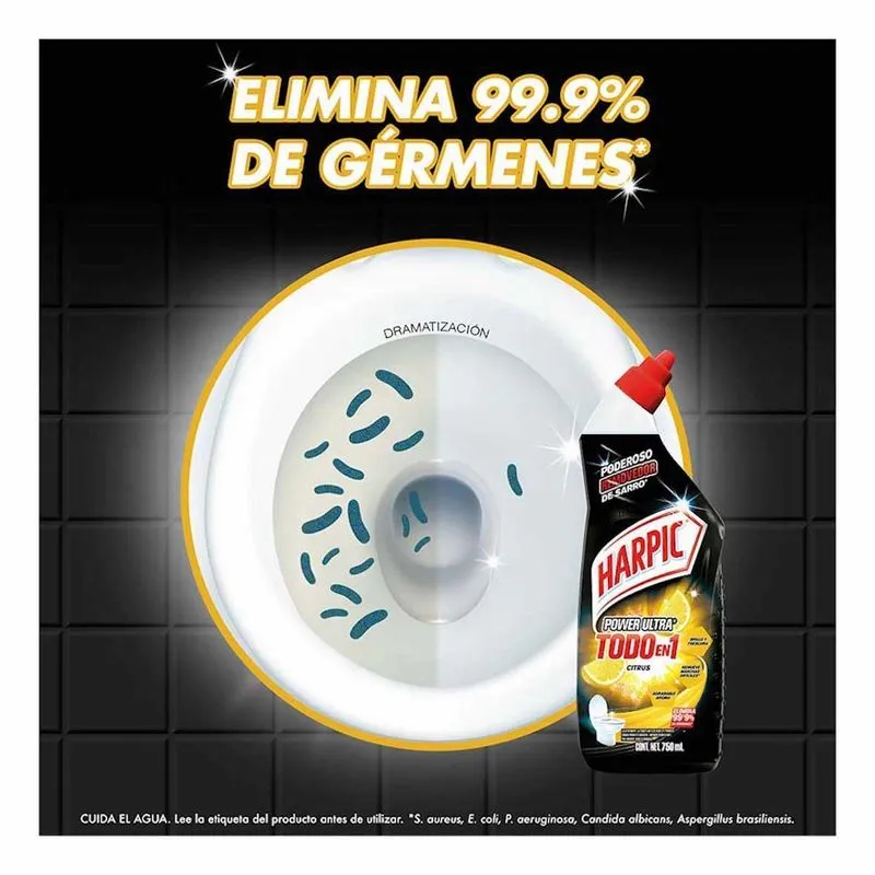 Además, mata el 99,9% de los gérmenes, combate manchas difíciles y aporta una ultra frescura con fragancia cítrica que mantiene tu baño limpio y agradable por más tiempo.