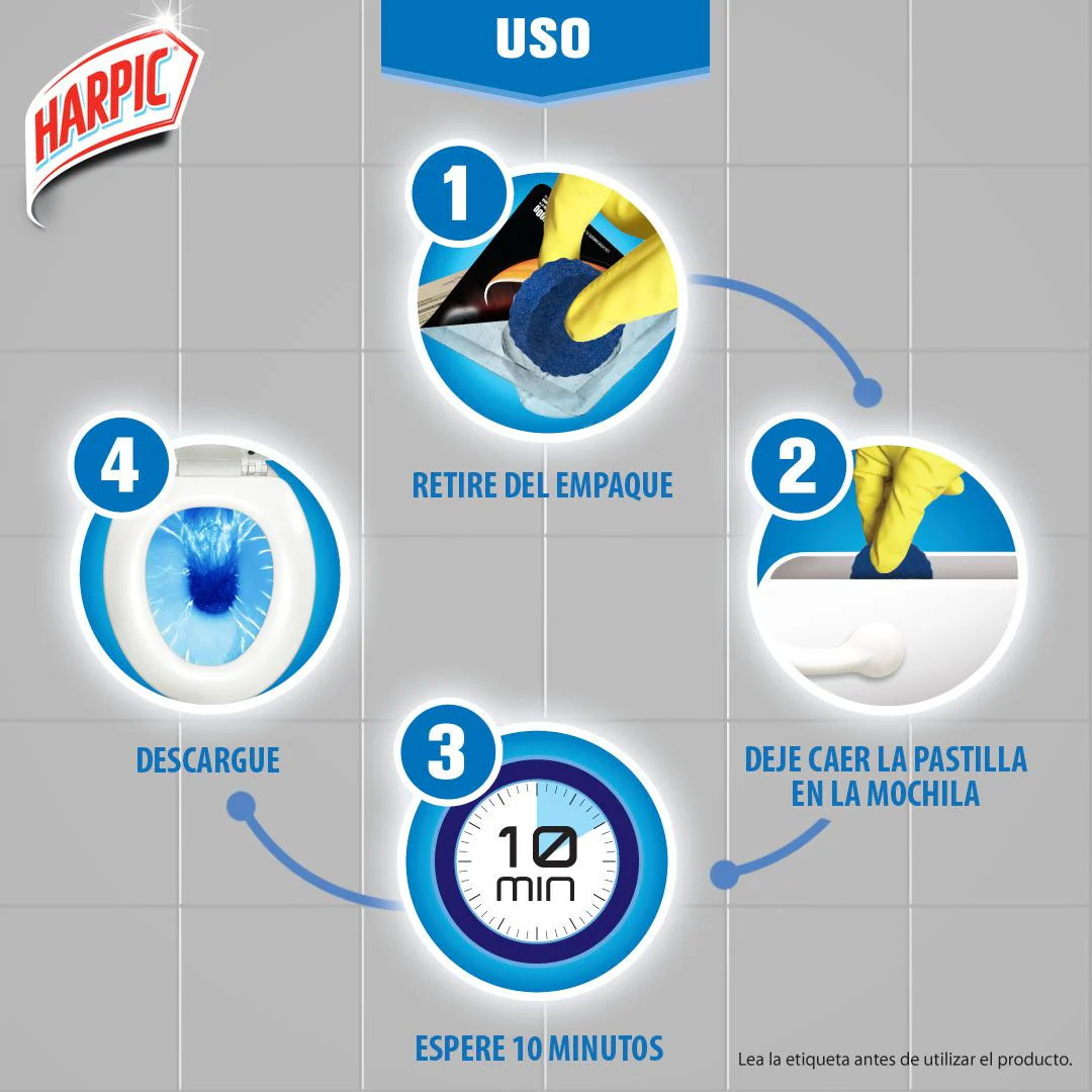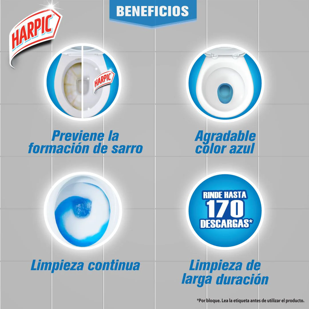 🚽 Limpieza profunda y frescura continua en cada descarga Mantén tu inodoro limpio y con aroma fresco gracias a las pastillas Power Ultra de Harpic. Su fórmula activa combate manchas, sarro y residuos con cada descarga de agua, manteniendo el estanque limpio por más tiempo.