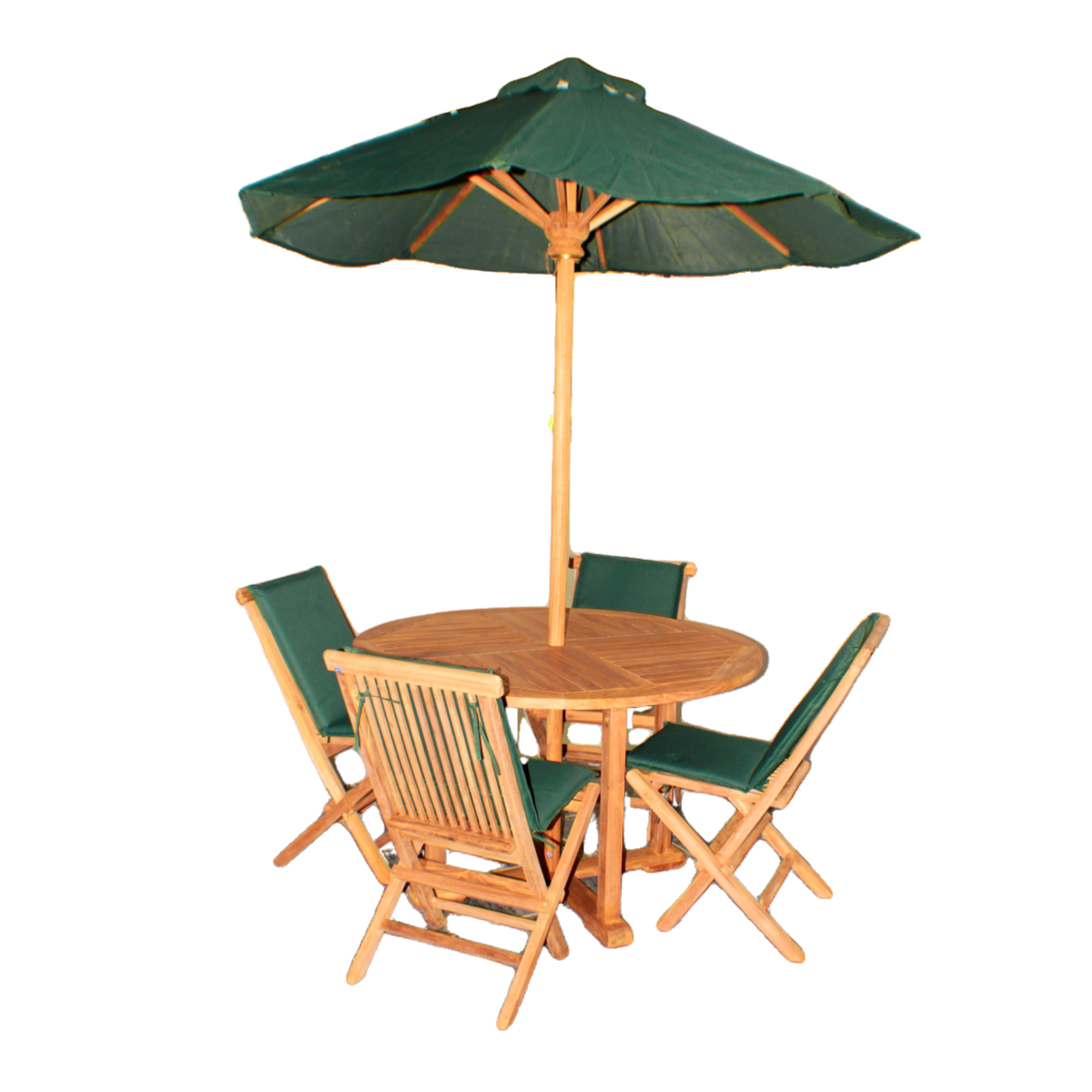 Juego Bali con sombrilla tela4 sillas con almohadonesMesa 120 cm diam. x75 cmSillas 89x47x43 cmCódigo 3197