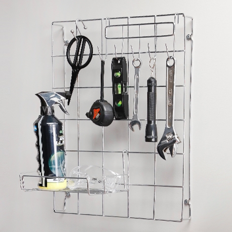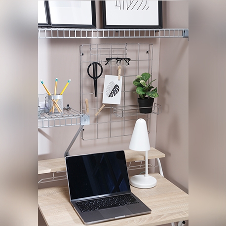 Con el nuevo Kit Cuadrícula + canastilla y perchero de Rejiplas, podrás darle uso a los espacios verticales y organizar ambientes como la cocina, cuarto útil, habitación, estudio, oficina o donde más la necesites. Es ventilada y fácil de instalar.