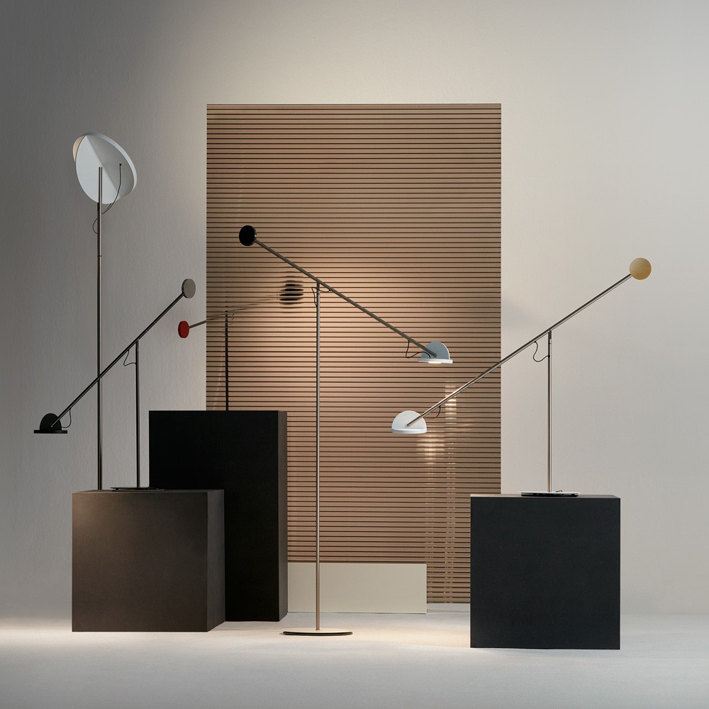 Círculos, semicírculos, tubos y barras de diferentes diámetros y grosores, materiales y pesos distintos… Con todos estos elementos primarios, la colección Copérnica construye esculturas geométricas de luz, que establecen una relación íntima con el espacio y combinan funcionalidad con la belleza de las líneas puras.La colección se compone de una versión de escritorio y una de pie que juegan con contrapesos al mezclar materiales de distinta densidad, como aluminio en el cabezal o acero en el extremo opuesto. Esta estructura permite mover la lámpara con gran precisión alcanzando alturas y distancias distintas para ajustar la posición y la dirección del haz de luz al gusto. Existe también la versión de pie, rotunda, de casi dos metros de altura para iluminar de forma indirecta o directa el ambiente gracias al sistema de cabezal basculante.