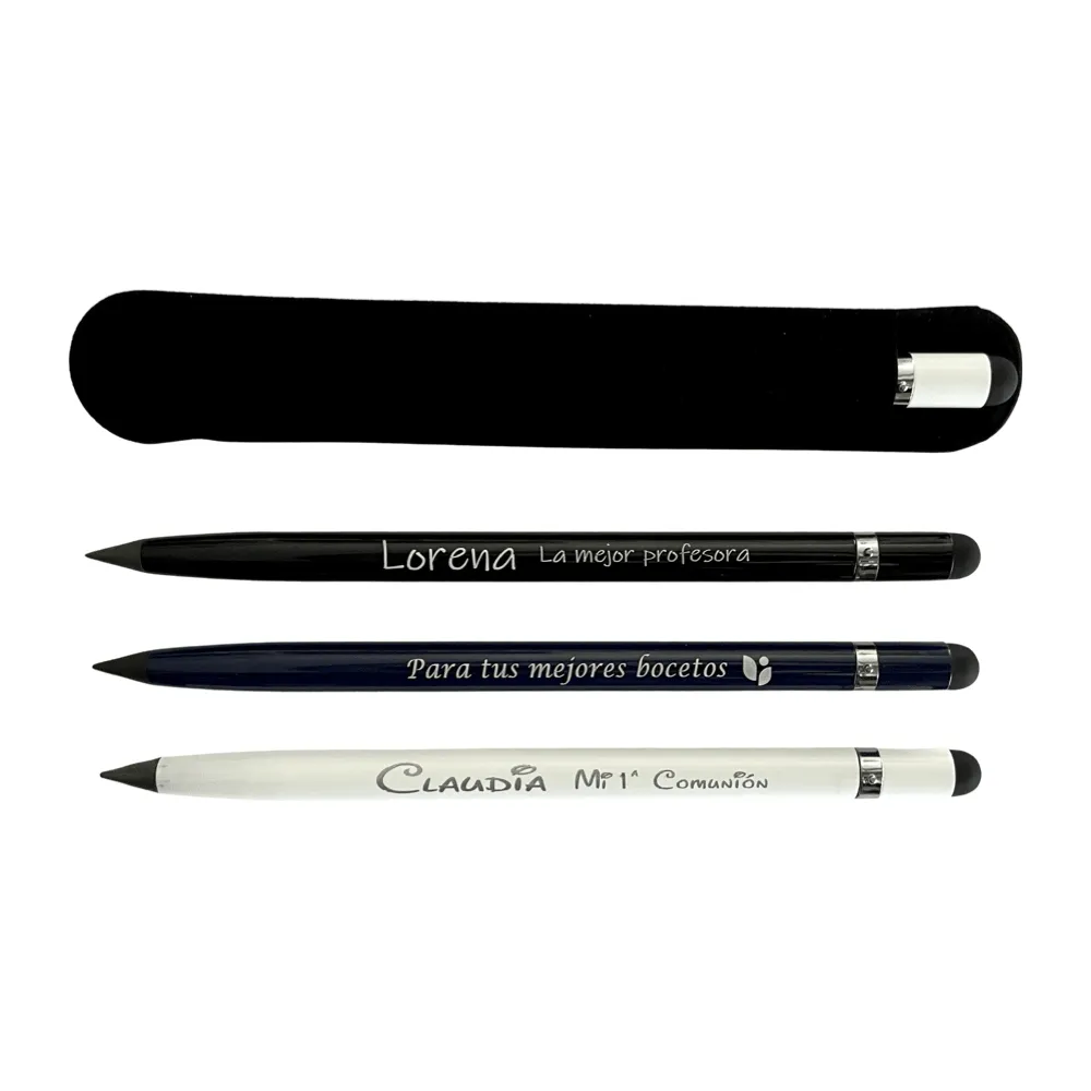 - Lápiz puntero eterno Personalizado presentado en funda de Antelina