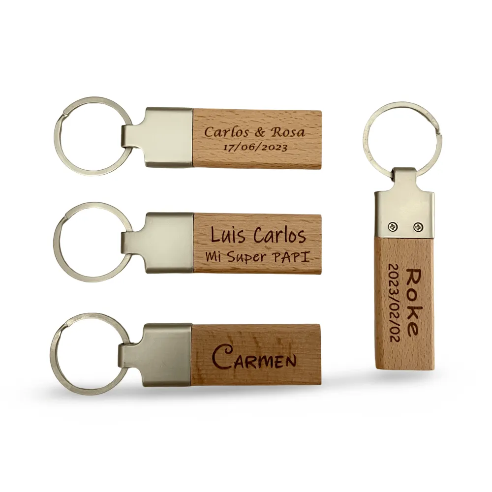 🛠️ Material Duradero: Hecho de madera natural y metal mate, este llavero es resistente y elegante. Ideal para uso diario o como recuerdo especial.
