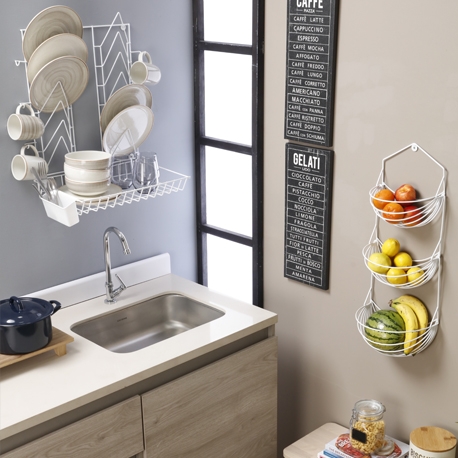 Cuenta con capacidad para 14 piezas de vajilla, incluye cubiertero incorporado y su estructura en rejilla metálica plastificada favorece la ventilación, evitando la acumulación de humedad. Además, es resistente a la humedad, no retiene olores y es inmune a plagas, lo que garantiza higiene y durabilidad.