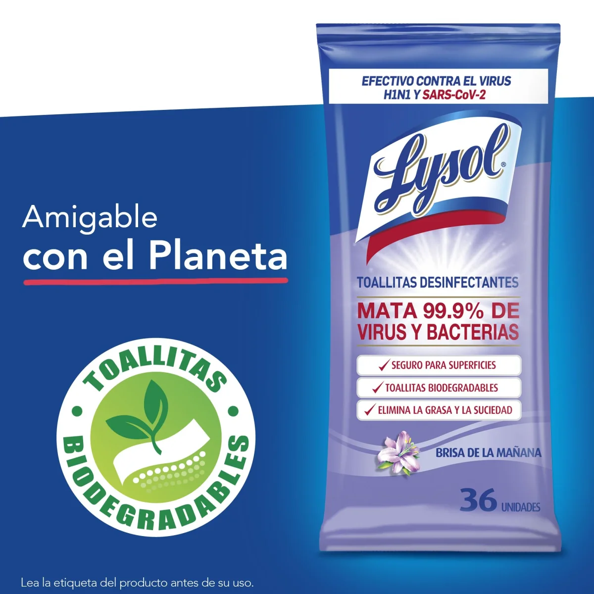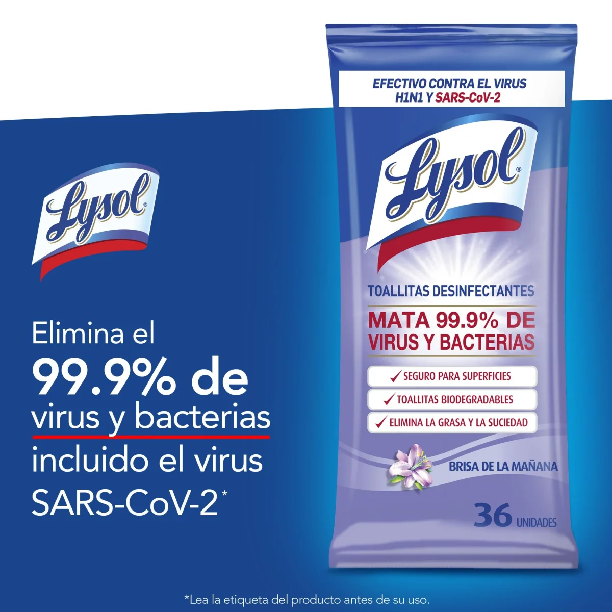 Las toallitas desinfectantes Lysol® biodegradables son la forma más fácil y rápida de limpiar y desinfectar superficies de alto contacto en tu hogar. Elimina el 99,9% de virus y bacterias, incluidos SARS-CoV-2 y H1N1, dejando un agradable aroma a brisa de la mañana.