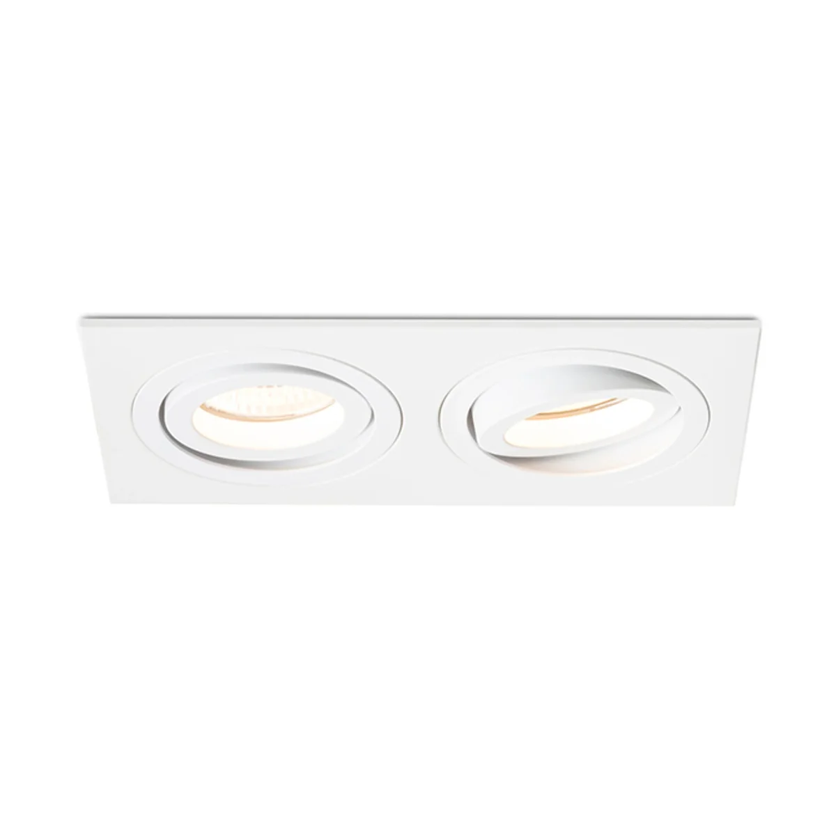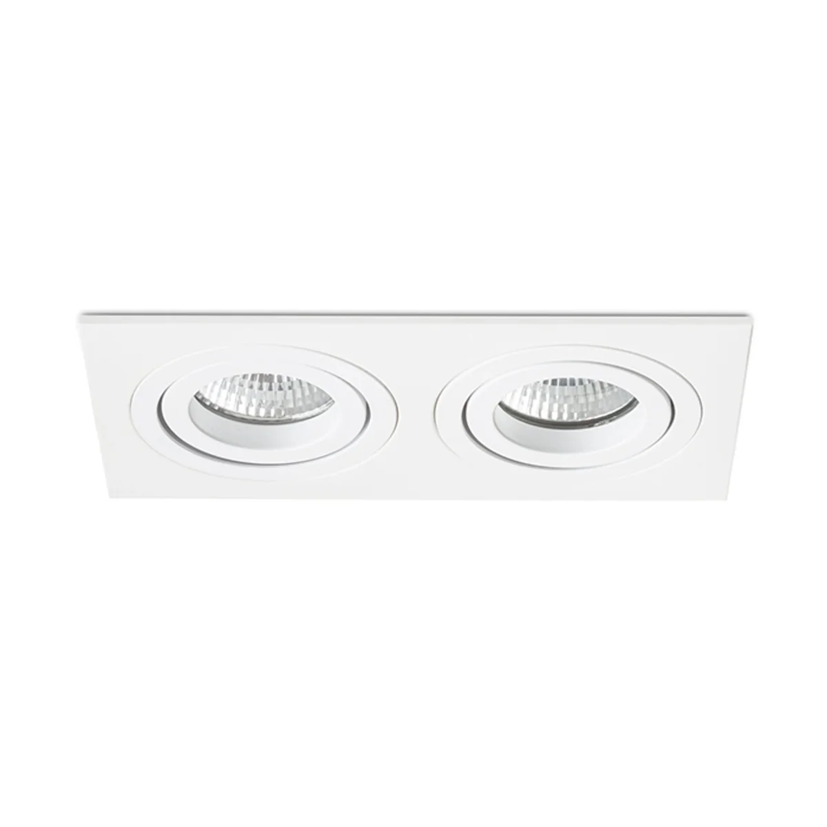 Luminaria rectangular doble avellanada en acabado aluminio con acabado natural y versione barnizada. Para bombillas GU10 con capacidad de inclinación.