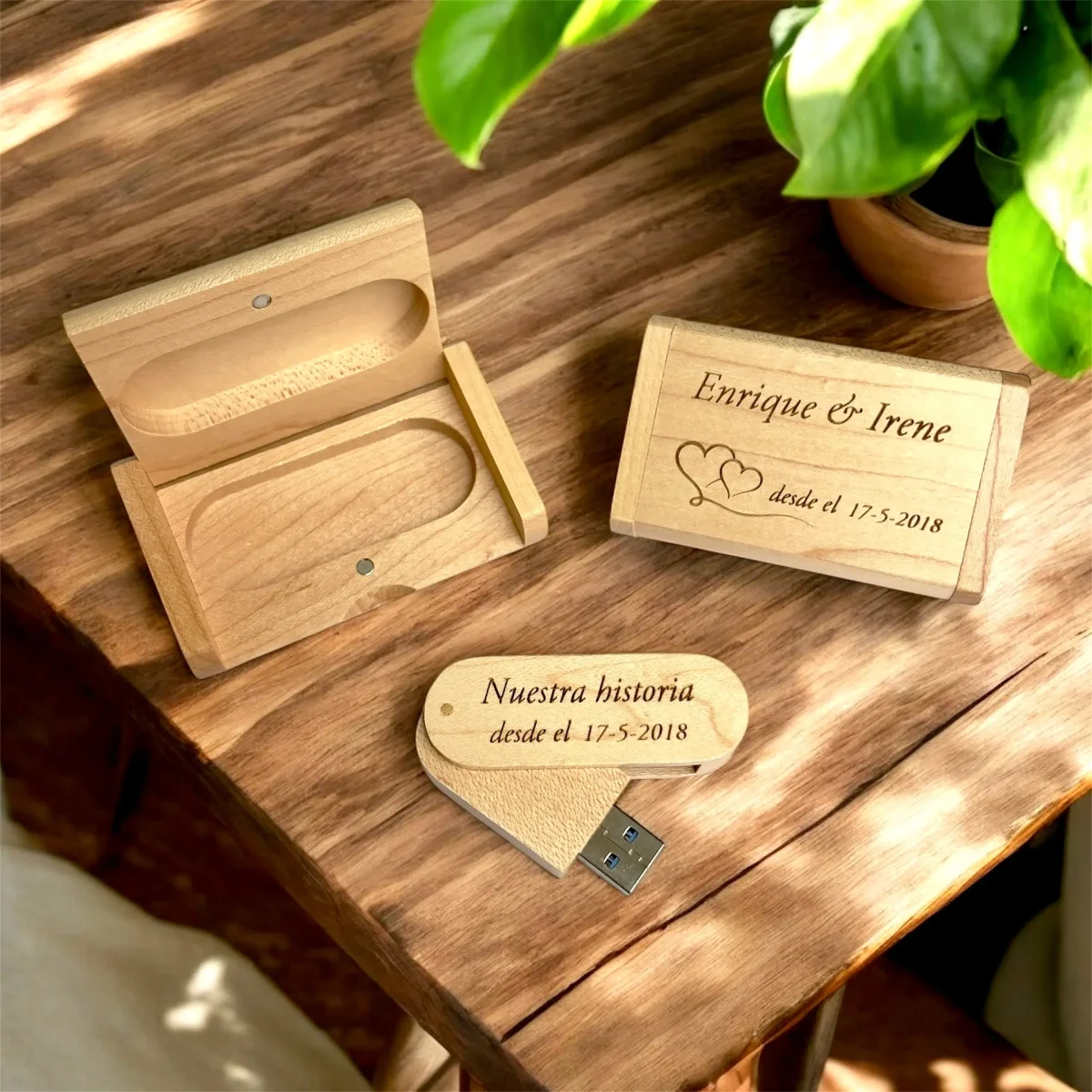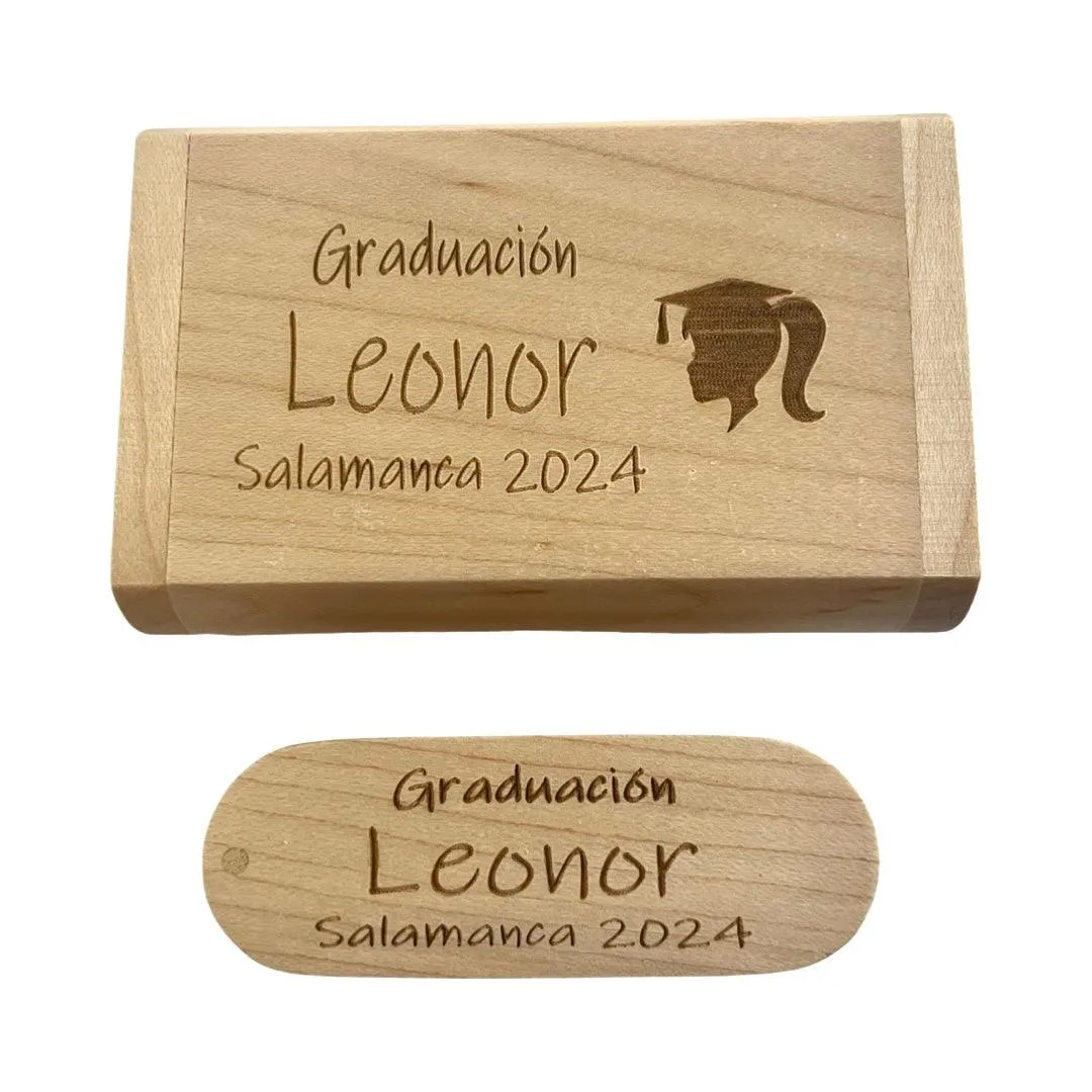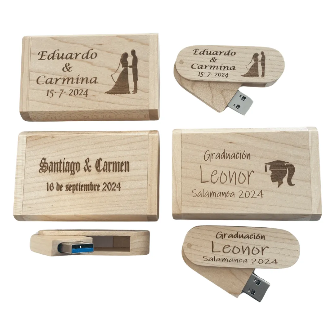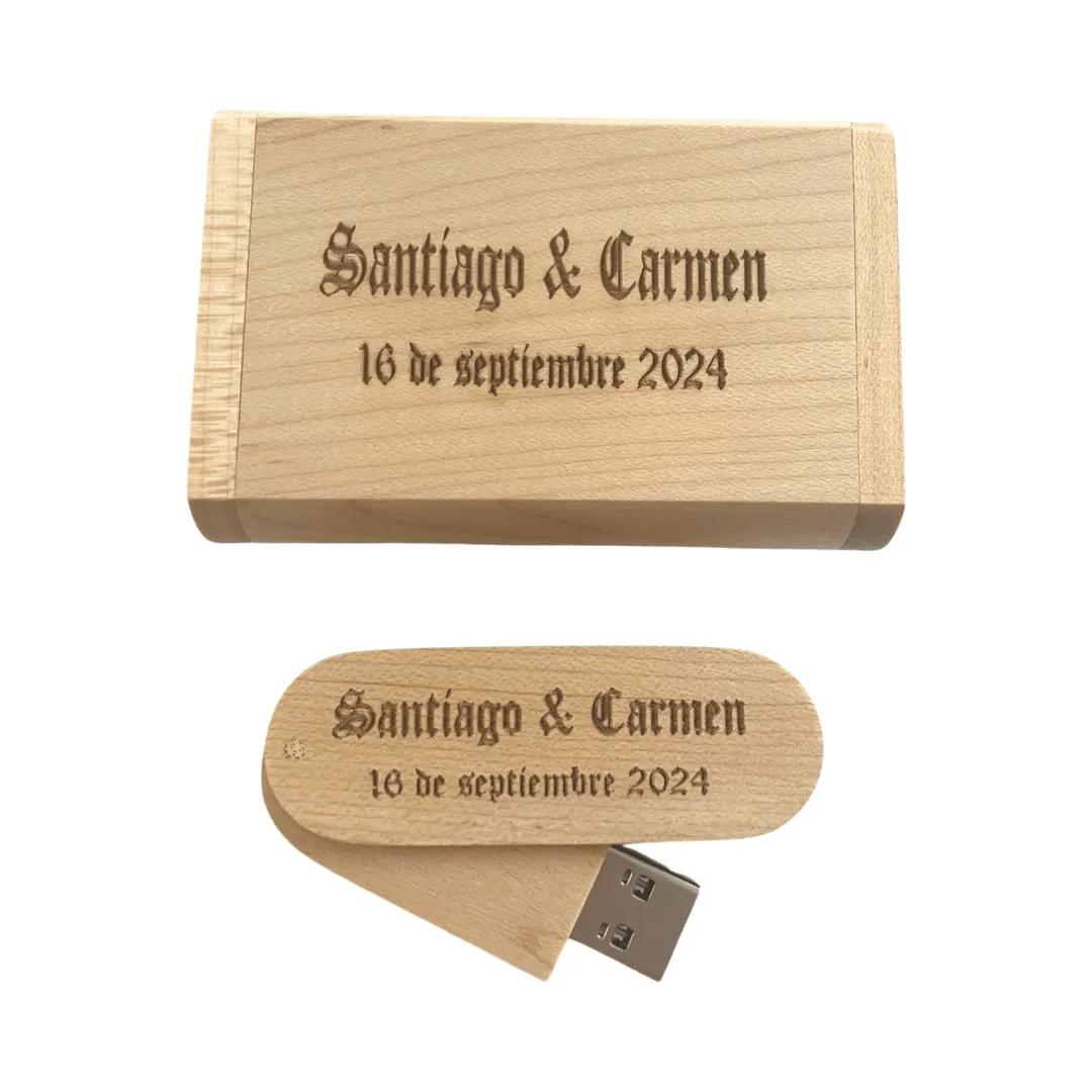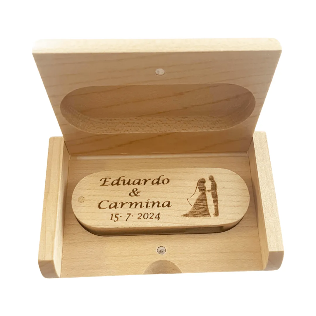 • 🏡 Pendrive personalizado con caja: Preséntalo en su caja de madera para un acabado premium.