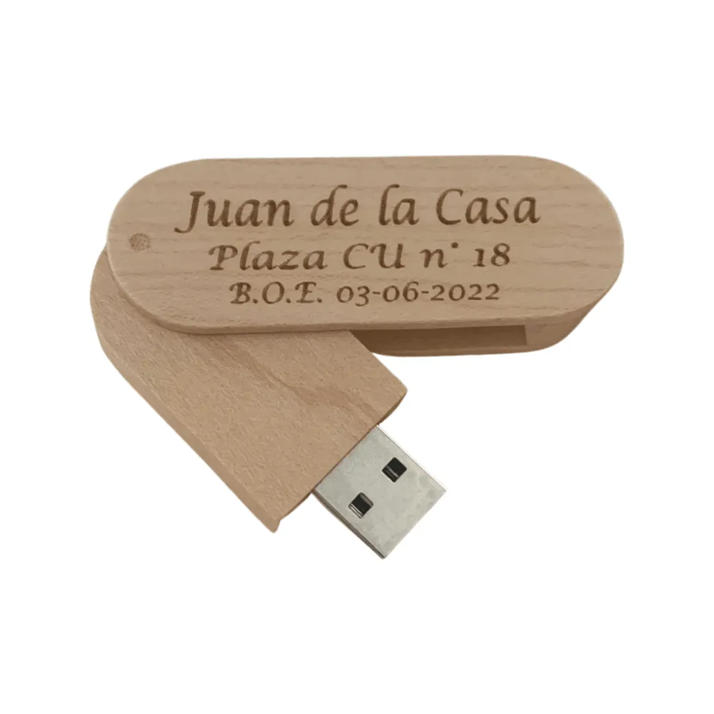 - ✍ Personalización: Grabado láser con texto, mensaje, logotipo o dibujo en cara A y B, convirtiéndolo en un pendrive personalizable único.
