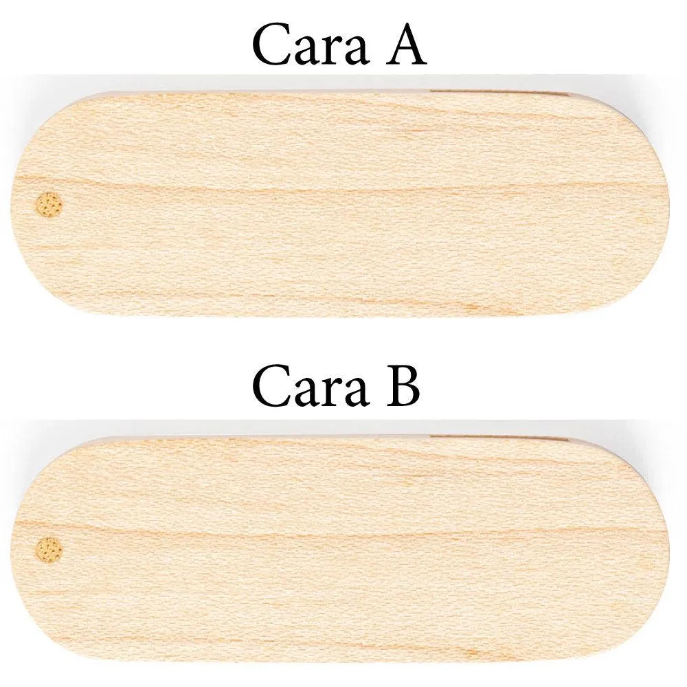 Descubre este pendrive personalizado de madera natural con capacidad de 32 GB o 64 GB y velocidad USB 3.0. Personalízalo con texto, logo o dibujo grabado en ambas caras para un regalo único.