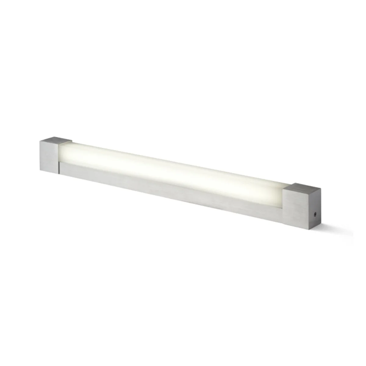 Luminaria lineal fluorescente ideal sobre espejos, en aluminio cepillado o lacada de blanco. Adecuada para ambientes húmedos.