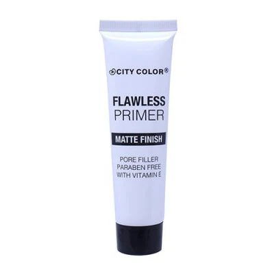El Primer Flawless con Acabado Mate de CITY COLOR es ideal para rellenar y cubrir los poros con vitamina E, creando una base impecable y suave para la aplicación de maquillaje.