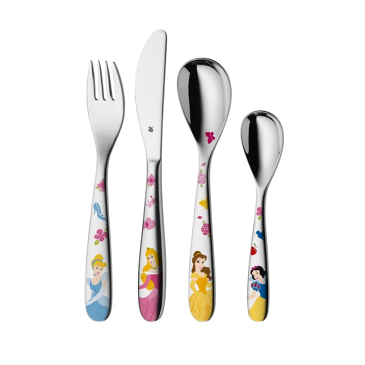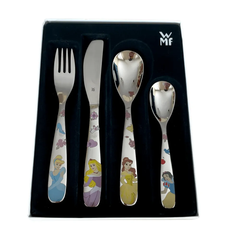 Haz que las comidas de los mas peques sean aún más mágicas con este encantador set de cubiertos de la Princesa Disney Cenicienta. Diseñado especialmente para las manos pequeñas, este set de 4 piezas es perfecto para que los más pequeños empiecen a usar cuchillo y tenedor de manera segura y divertida.