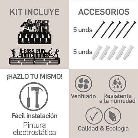 Compra ya el Set x2 Soporte para medallas y accesorios American football de SOH DESIGN, porque tus logros merecen exhibirse con orgullo.