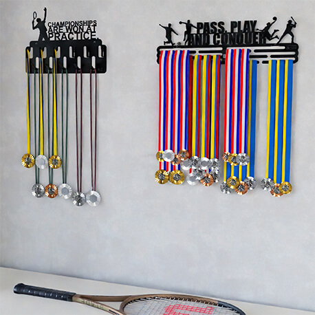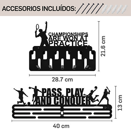 Juego de 2 Soportes para Medallas y Accesorios SOH DESIGN – ¡Exhibe Tu Éxito con Orgullo! Convierte tus logros deportivos en una auténtica obra de arte con los Soportes para Medallas y Accesorios SOH DESIGN. Diseñados para destacar en cualquier espacio, estos estantes de acero premium son ideales para jugadores de fútbol, corredores, gimnastas, ciclistas, atletas de baloncesto y todo tipo de campeones que deseen exhibir sus medallas, cintas y premios con estilo y orden.