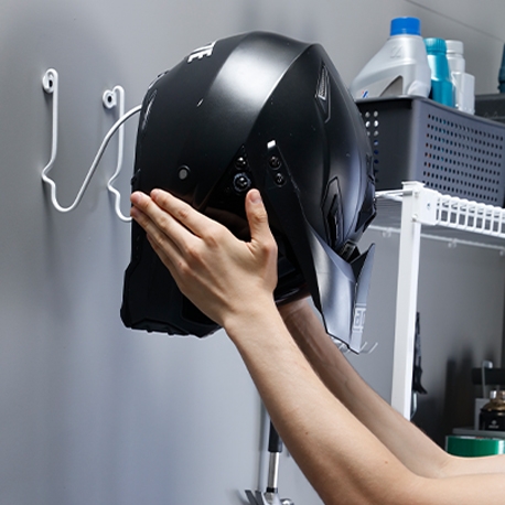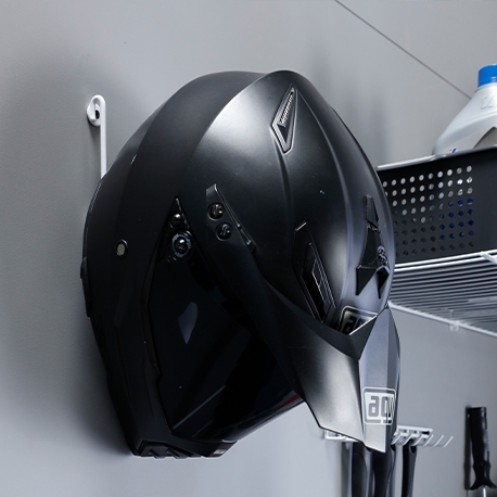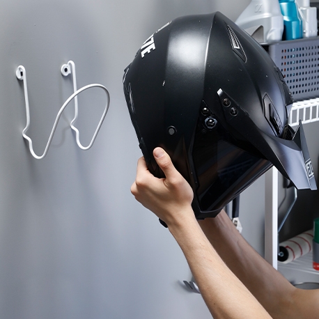Es un soporte resistente y seguro que maximiza tus espacios y se ajusta fácilmente a la pared, permitiéndote mantener tus cascos de moto o bicicleta siempre visibles, ventilados y al alcance. Su diseño resistente y minimalista aporta orden sin ocupar espacio innecesario.