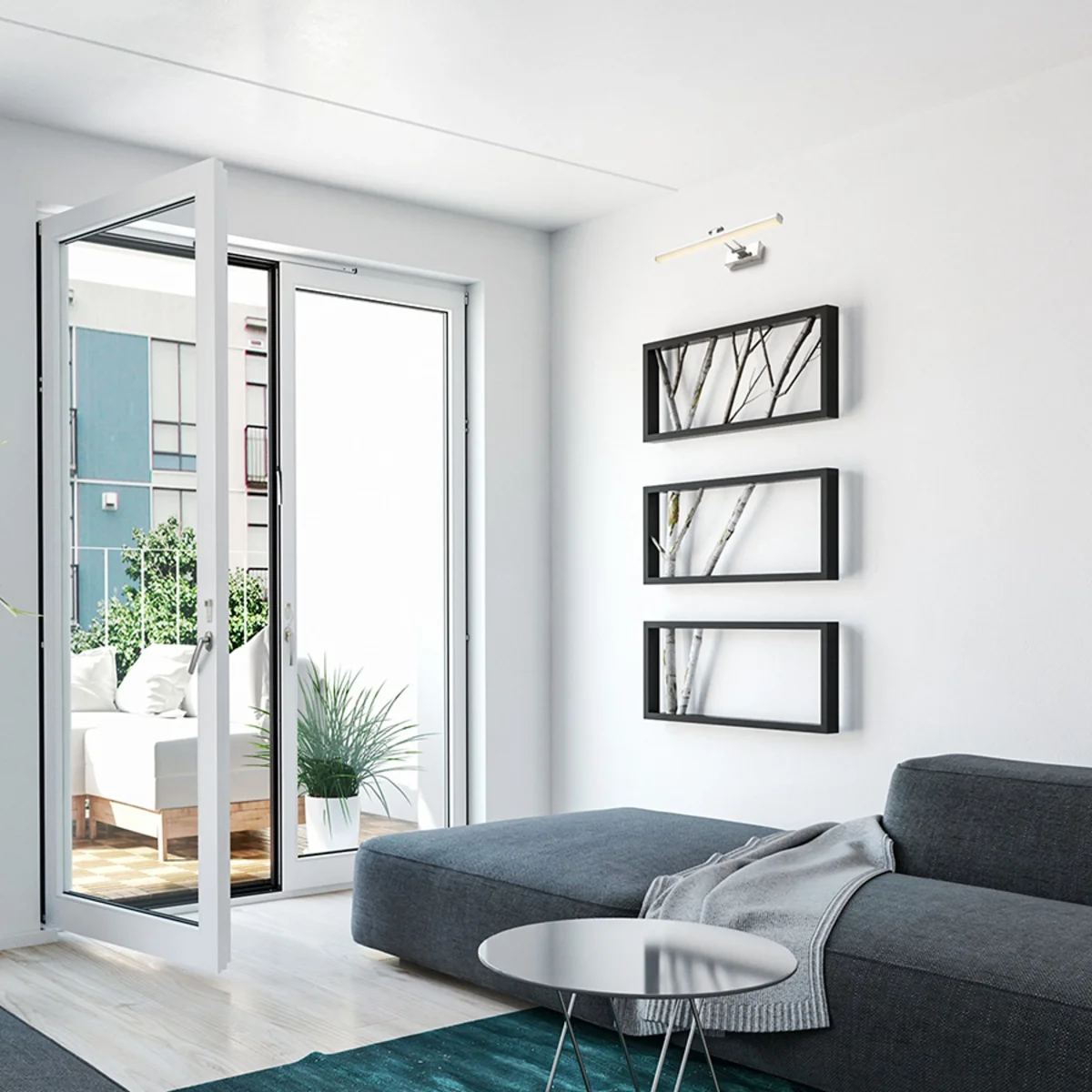 Luz lineal con LED integrado, adecuado para uso sobre cuadros.