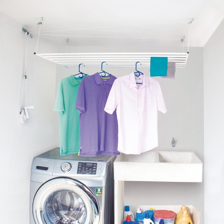 Con el Tendedero de techo de Rejiplas, podrás optimizar el espacio superior de la zona de la lavadora o el lavadero, cuenta con polea para ajustar la altura según tu necesidad. Maximiza el espacio con 7 tubos para secado. Es práctico, ventilado y resistente a la humedad.