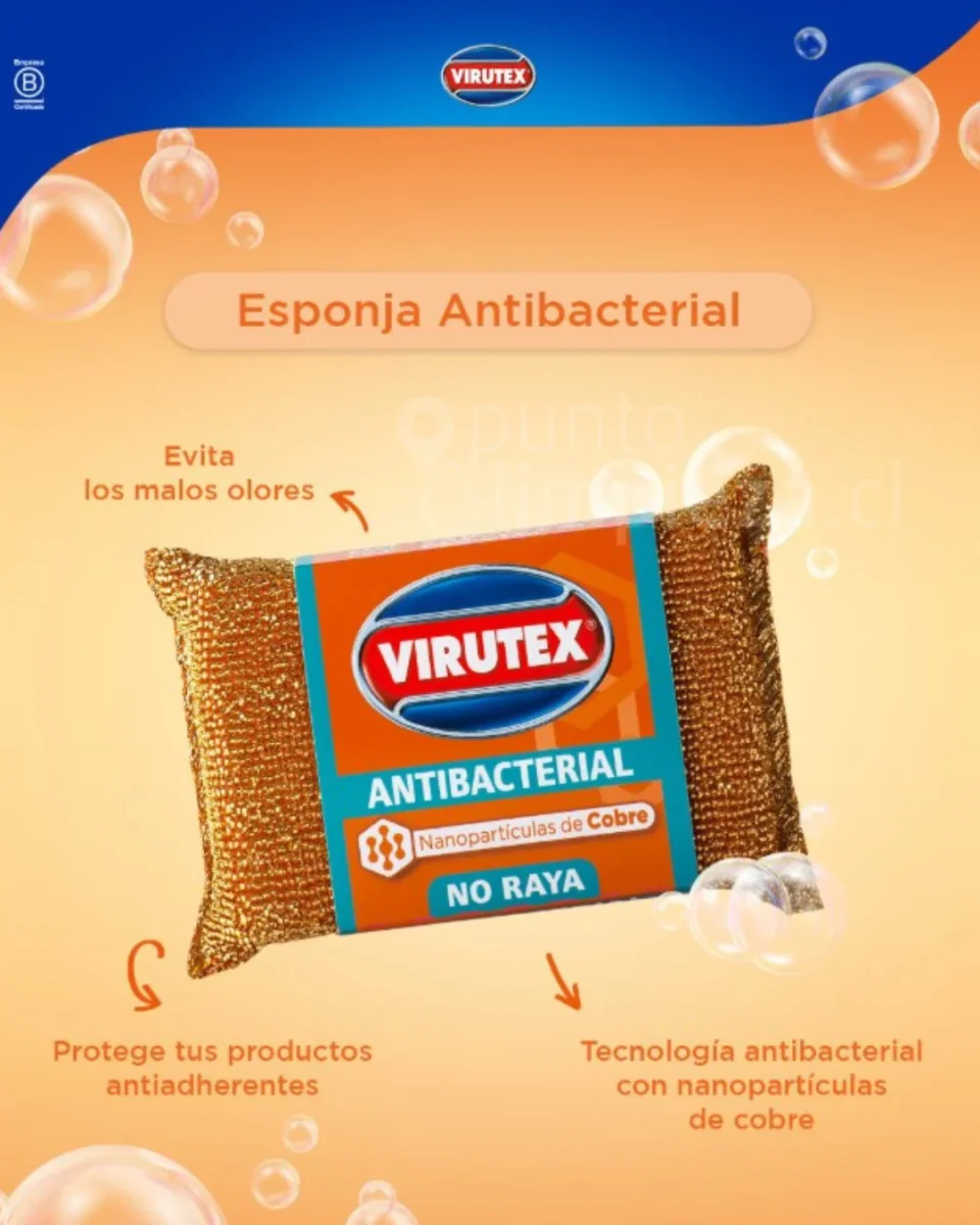 La esponja Virutex con nanopartículas de cobre ofrece una limpieza eficaz y segura, ya que sus propiedades antibacteriales ayudan a evitar la proliferación de bacterias.