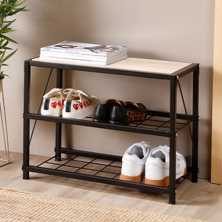 Fabricado en acero y madera, está pensado para durar, el Zapatero Banca está diseñado para integrarse con cualquier estilo decorativo y para soportar el día a día. Sus compartimentos inferiores te permiten clasificar y mantener tus zapatos organizados, mientras que la parte superior funciona como asiento ideal para calzarse.